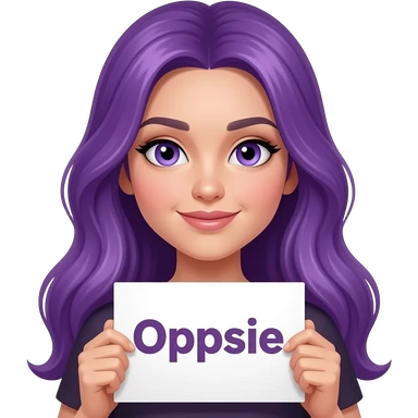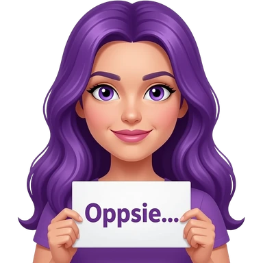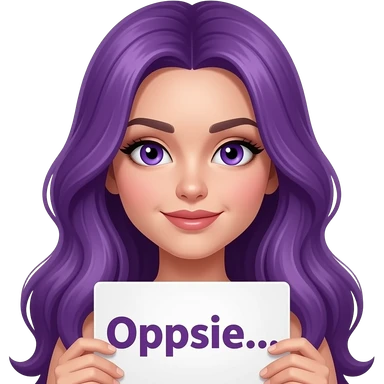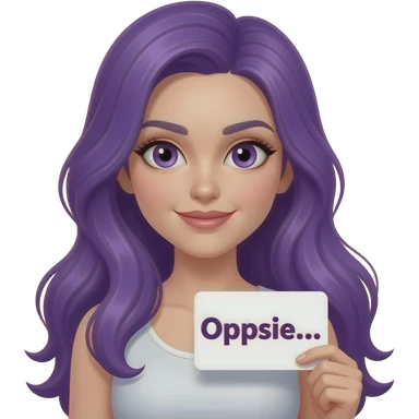 sexy girl with long purple hair and purple eyes holding a Oopsie... sign emoji