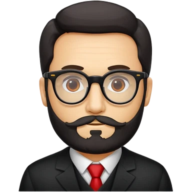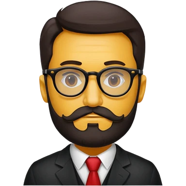 Un profesor calvo, que tenga barba abundante de color negro, lleva gafas con el cristal de color amarillo y un abrigo de cuadros rojo emoji