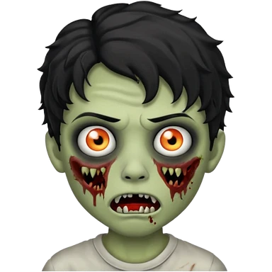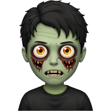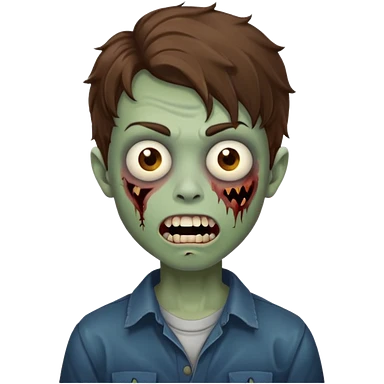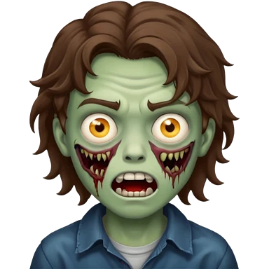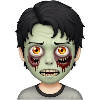 a boy with wavy hair, a zombie-shaped mouth piercing hum emoji