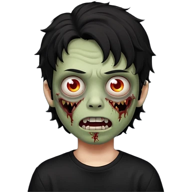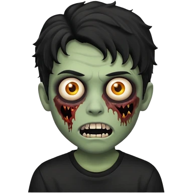 a boy with wavy hair, a zombie-shaped mouth piercing hum, and black hair with a black shirt too emoji