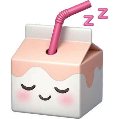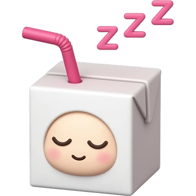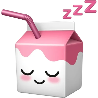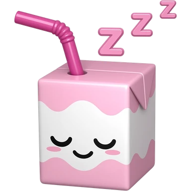 kawaii juice box with a sleeping face, with a hot pink straw, and pink zzz in pink font above the head emoji