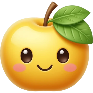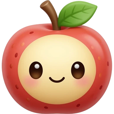 Cute Kawaii Apple, round and plump, bright shiny red with a tiny green leaf, chubby cheeks, sparkling eyes, a happy smile, soft glowing highlights, radiating fresh sweetness! emoji