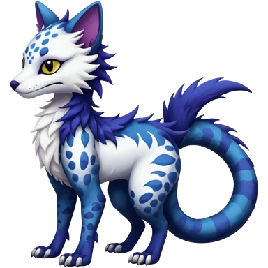 Kawaii dark edgy fantasy feline-vernid-sergal-fursona animal creature with a tufted tail full body with intricate markings emoji