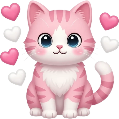 kawaii cat pink with hearts with blush as happy emoji | AI Emoji Generator