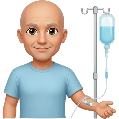 ill looking bald patient receiving i.v. chemotherapy in their arm emoji