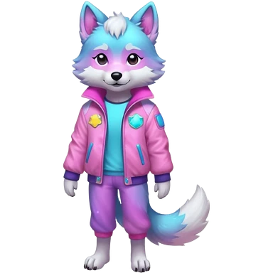 anthropomorphic anthro kawaii cute colorful shiny pastel nebula furry wolf-fursona furry (full body) emoji