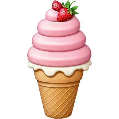 A fluffy strawberry cream roll cake with pink swirl and sliced strawberries on top, soft lighting, kawaii dessert style emoji