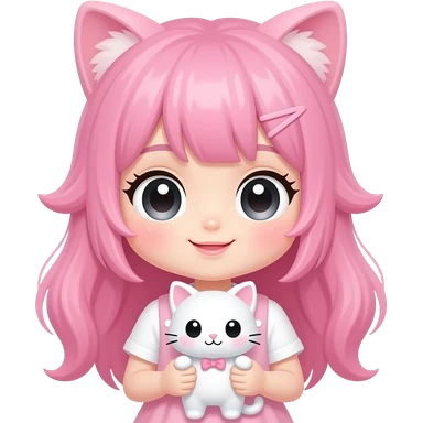 kawaii pink cat gitl with pink hair and kawaii toy emoji