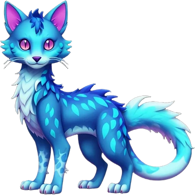 Kawaii dark edgy colorful abyssal vibrant neon glowing fantasy abyss-midnight-eline-vernid-sergal-fursona animal creature with a tufted tail full body with intricate markings emoji