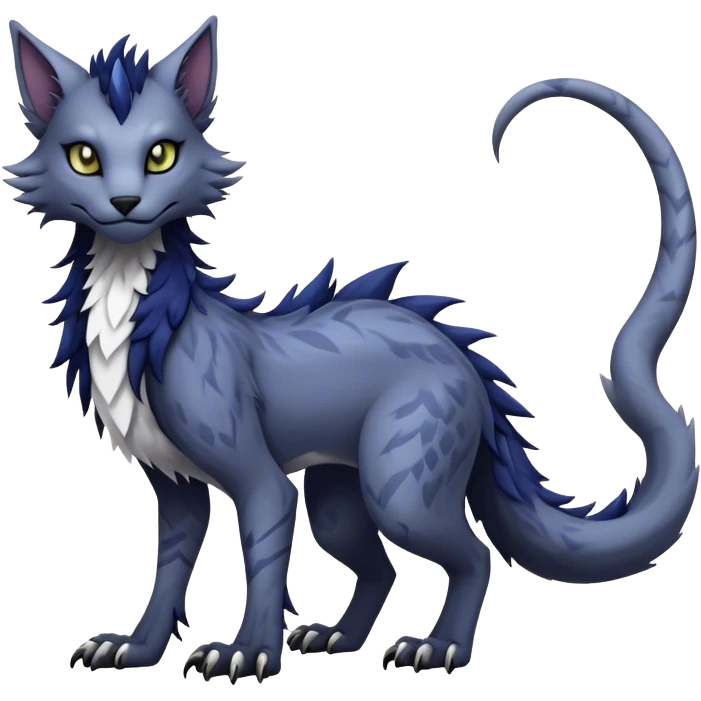 Kawaii dark edgy fantasy feline-vernid-sergal-fursona animal creature with a tufted tail full body with intricate markings emoji | AI Emoji Generator