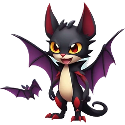 Kawaii Edgy Cool Vampiric Beautiful Noivern-Nargacuga-Litten with big Bat Ears full body emoji