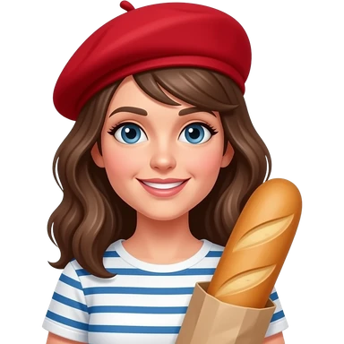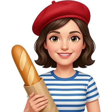 A French woman with a red beret a white and blue striped T-shirt a baguette of bread emoji