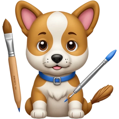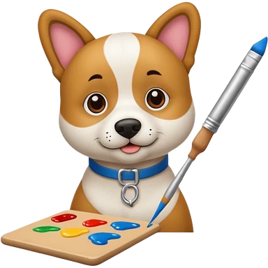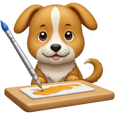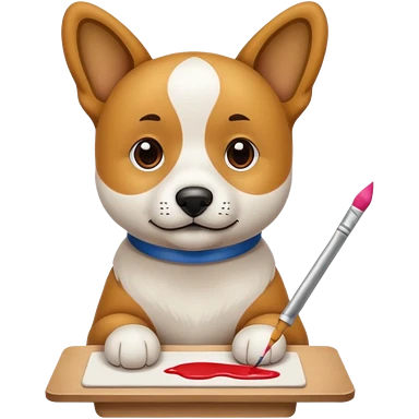 perrito pintando un lienzo en blanco con un pincel en la pata emoji