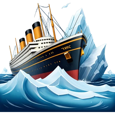 Titanic ship hitting an iceberg, dramatic scene emoji