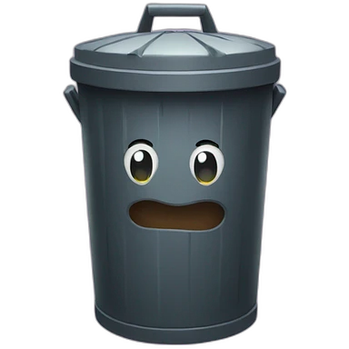 a trash can with brain instead of the lid, smiling face on the trash can emoji