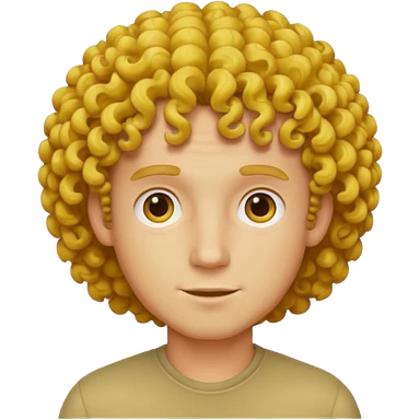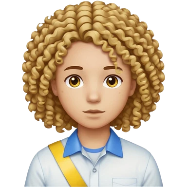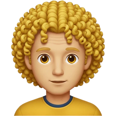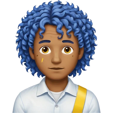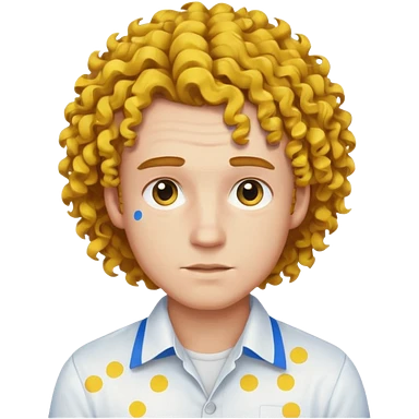 Make me an emoji that has a guy with a white shirt and yellow tape around the shirt with brown and blue spots hair make the hair curly emoji