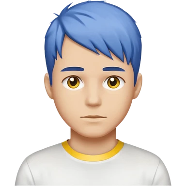 Make me an emoji that has a guy with a white shirt and yellow tape around the shirt with brown and blue hair emoji