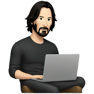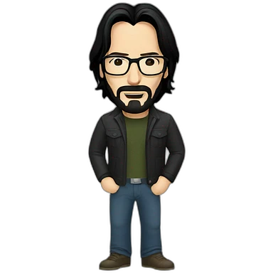 Create an emoji inspired by Keanu Reeves. It should be recognizable with his signature features: long dark hair, a beard, and a serious yet kind expression. emoji