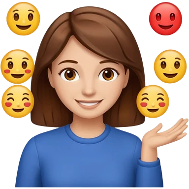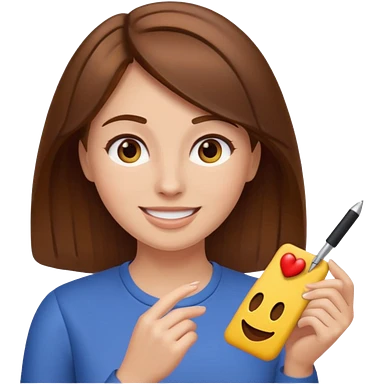 Keep her skin fair but give her brown hair. She is teaching how to make emojis. emoji