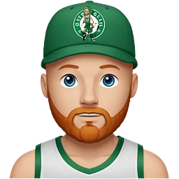 Keep same emoji bald guy with a ginger beard, blue eyes and muscles, add Boston Celtics jersey and Baseball cap emoji | AI Emoji Generator