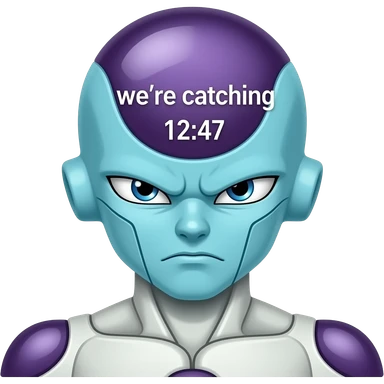 Keep this frieza emoji the exact same just change the text to “we’re catching 12:47 “ emoji | AI Emoji Generator