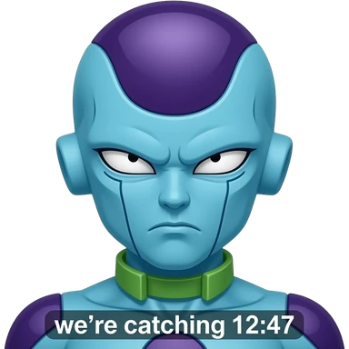 Keep this frieza emoji the exact same just change the text to βweβre catching 12:47 β emoji