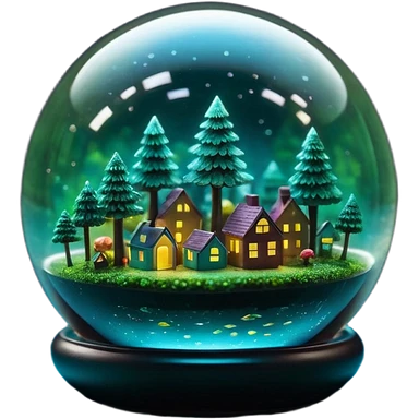 Tiny emoji worlds inside floating glass spheres, each containing miniature forests, oceans, and cities, glowing softly in dark void, cinematic macro lens perspective, high-detail reflections, iridescent color palette, surreal fantasy vibe emoji