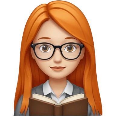 Long Hair Women with Book, Orange straight Hair, glasses emoji