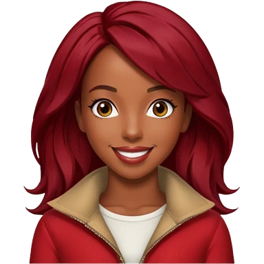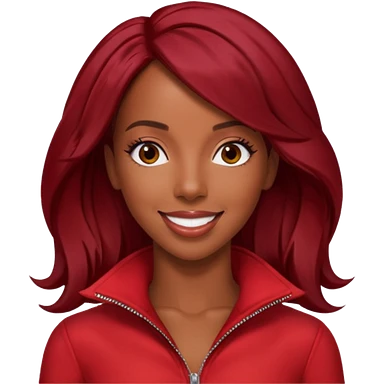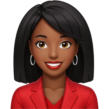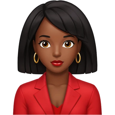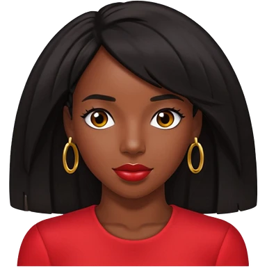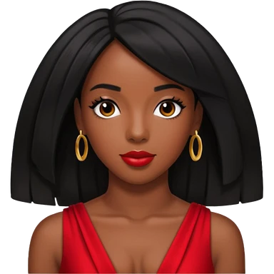 Kelly Rowland brown eyes, black hair, red outfit with earrings emoji
