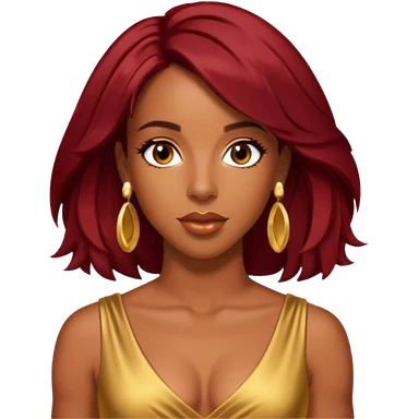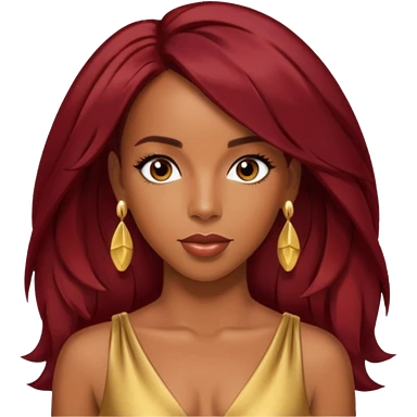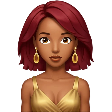 Kelly Rowland Dark Red Hair, Brown Eyes, Gold Dress with earrings emoji