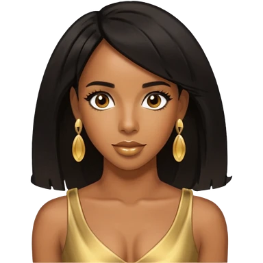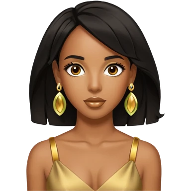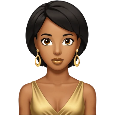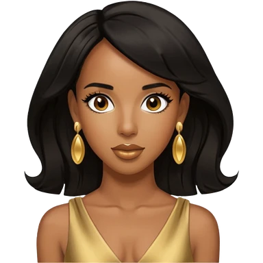 Kelly Rowland brown eyes, black hair, gold dress with earrings emoji