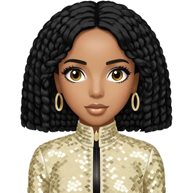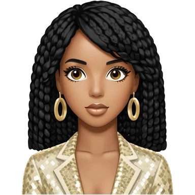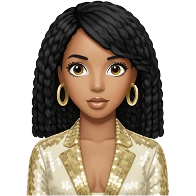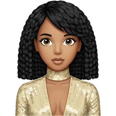 Kelly Rowland from Destiny's Child with black hair, ivory sequin outfit emoji