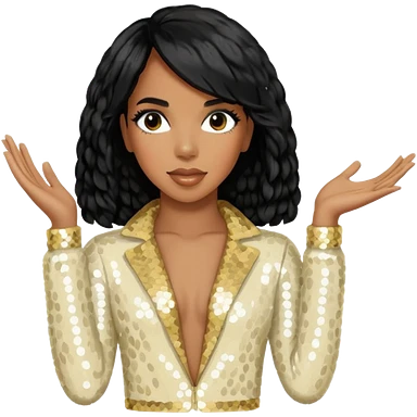 Kelly Rowland from Destiny's Child with black hair, cream sequin outfit emoji