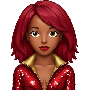 Kelly Rowland from Destiny's Child with dark red hair, red sequin outfit emoji
