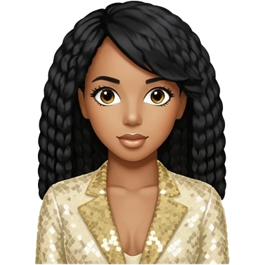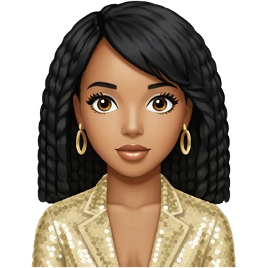 Kelly Rowland from Destiny's Child with black hair, ivory sequin outfit emoji
