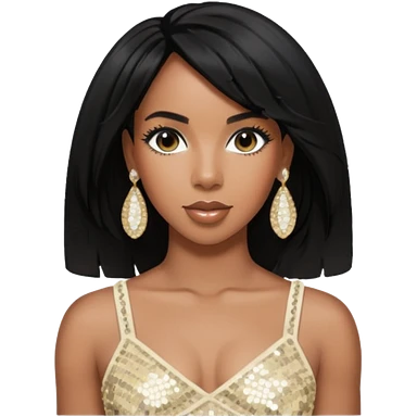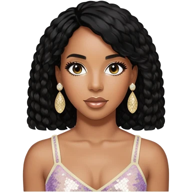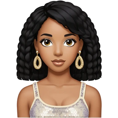 Kelly Rowland with black hair, red sequin crop top and neck bracelet emoji | AI Emoji Generator