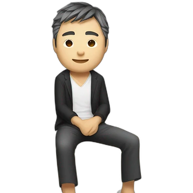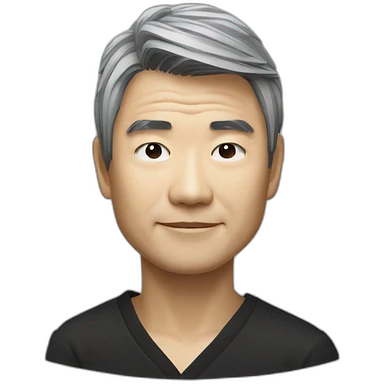 male Kendo Muppet with dark hair side-part and brown eyes with indigoblue Gi and Hakama and a dark Kendo-armor emoji