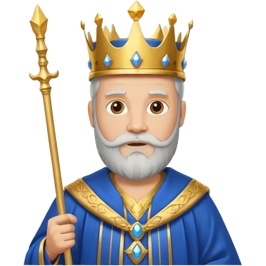 Bearded King, Wise king with short white beard, royal staff in hand, wearing crown, blue emoji