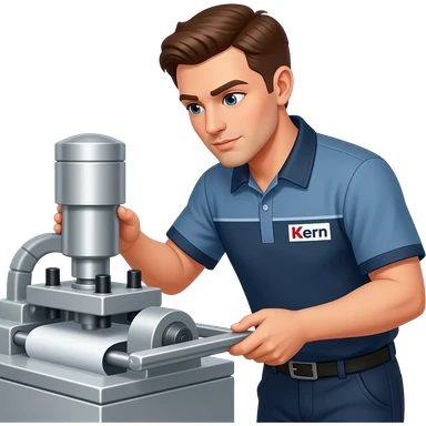service technician with kern logo working on a Kern enveloping inserting system. visit www.kernworld.com to check aur machines. emoji