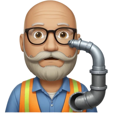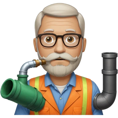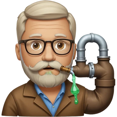 50 year old bearded and moustached white male wearing glasses. In his mouth is a sewer pipe and out the end is flowing brown liquid into a street gutter. emoji