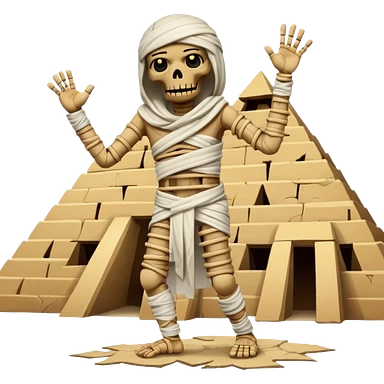 spooky dead mummy dancing in front of Egyptian pyramid emoji