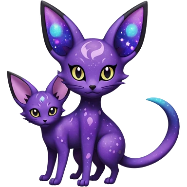 Obsidian Black Iridescent Deep-Violet Cosmic-Speckled Nebula-Marked Espeon-Noibat-Purrloin-hybrid-creature (full body) emoji