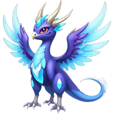 Starlit Glimmer-Blue Galaxy-Haloed Luminous Astral Feathered Noivern-Lunala-hybrid-creature (full body) emoji