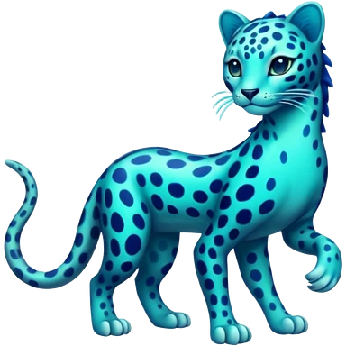 Bioluminescent Neon-Cyan Ripple-Patterned Soft-Scaled Aquatic Fantastical Liepard-Amaura-Manokit-fusion creature (full body) emoji