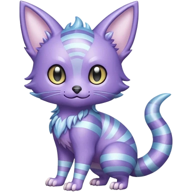 Shiny Iridescent Pastel-Lavender Frosted Glossy Crystal-Striped Noibat-Litten-Trico-hybrid creature (full body) emoji