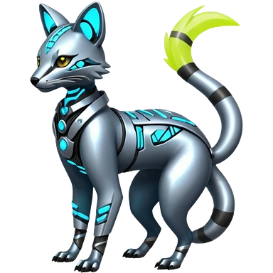 Metallic Alloy-Silver Chrome-Plated Futuristic Neon-Circuit Cyberpunk Genet-Zeraora-Protogen-fusion-creature (full body) emoji