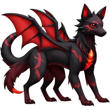 Dusky Soot-Black and Crimson-Gleaming Ember-Veined Gothic Draconic Houndour-Umbreon-Zoroark-hybrid creature (full body) emoji