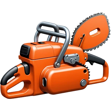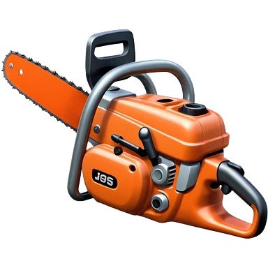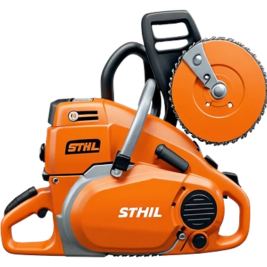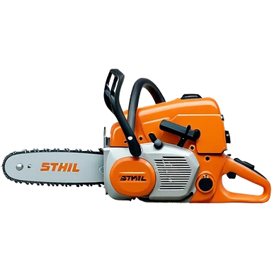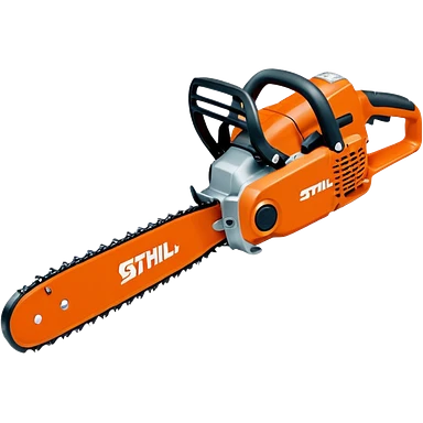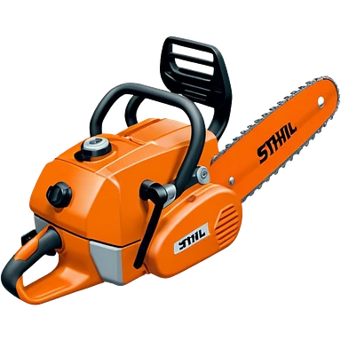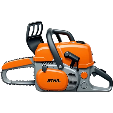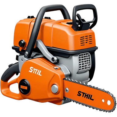 Kettensäge Stihl MS500i von der Seite, mit gut sichtbarem Stihl-Logo, orange-graue Farben, einfacher Emoji-Stil emoji