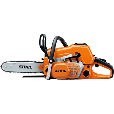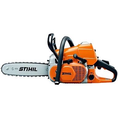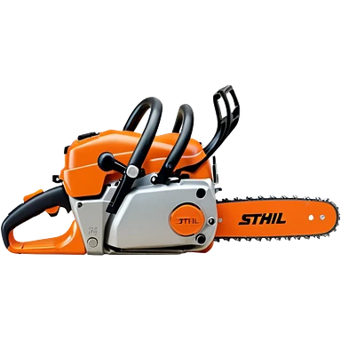 Kettensäge Stihl MS500i von der Seite, mit gut sichtbarem Stihl-Logo, orange-graue Farben, einfacher Emoji-Stil emoji | AI Emoji Generator