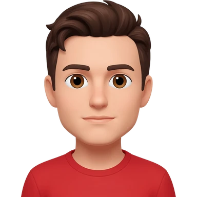 Kevin Miles with brown eyes, dark brown hair, red shirt emoji